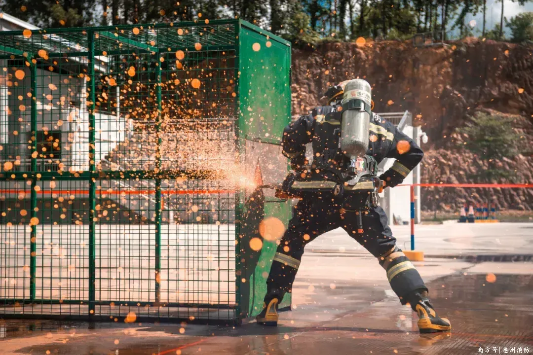 在一次消防手段比武中,又名消防员身披防守装备,背使气瓶,进行切割破拆,四溅的火花似金色雨点上升。这刹那间,不仅是手段的淬真金不怕火,更是看护生命的誓词。