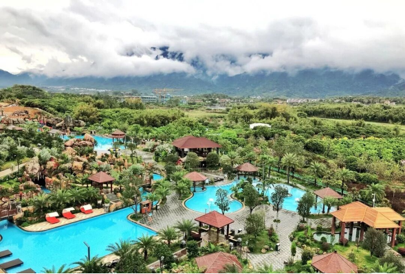 锦绣香江温泉城,毗邻南昆山脉,热带雨林式园林野心,高下错乱,温泉区园林式的布局,小路通幽。