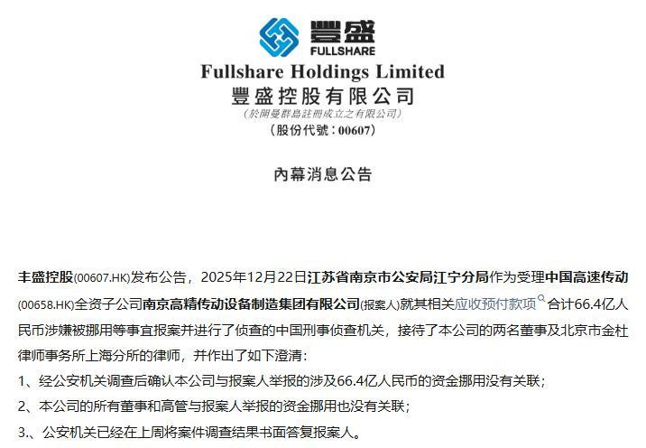 但真实引爆矛盾的,照旧上诉2024年曝光的66.4亿元多半资金失散案。中国高速传动马上撤职了由丰盛提名的实施董事房坚,指其“未合营看望,对资金暴雷负有株连”。